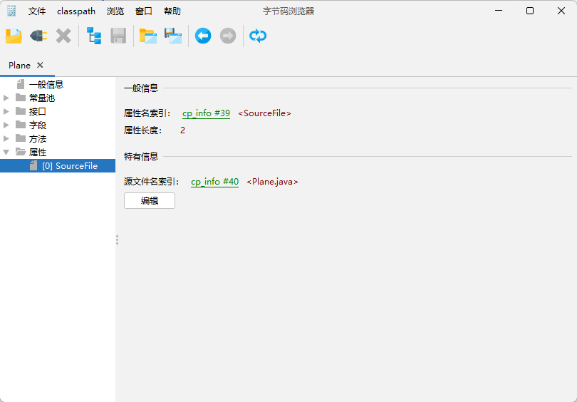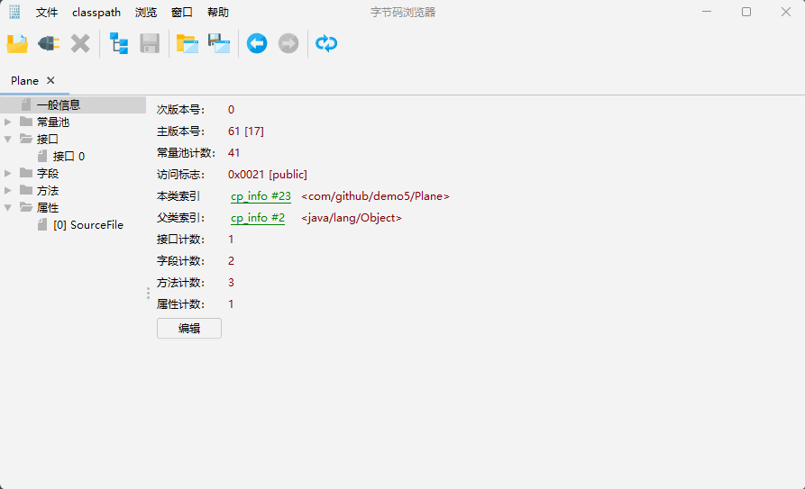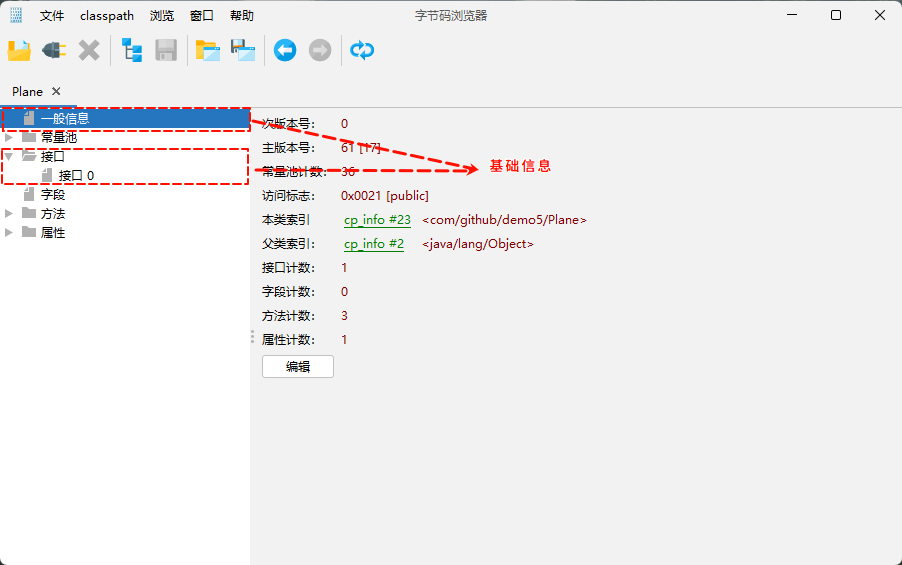 基本信息在 jclasslib 中拆分为一般信息和接口。