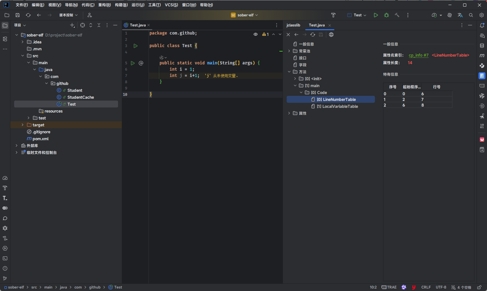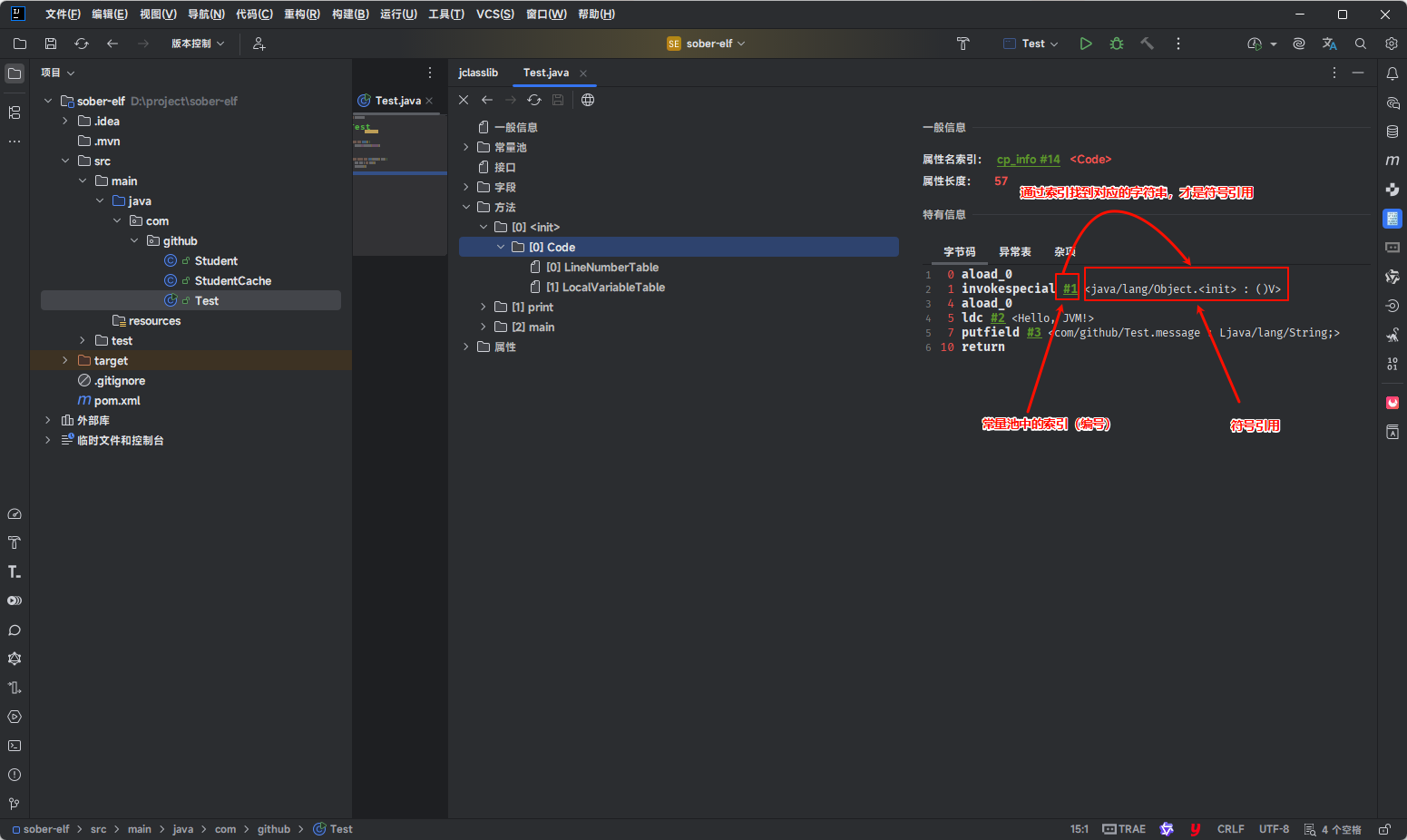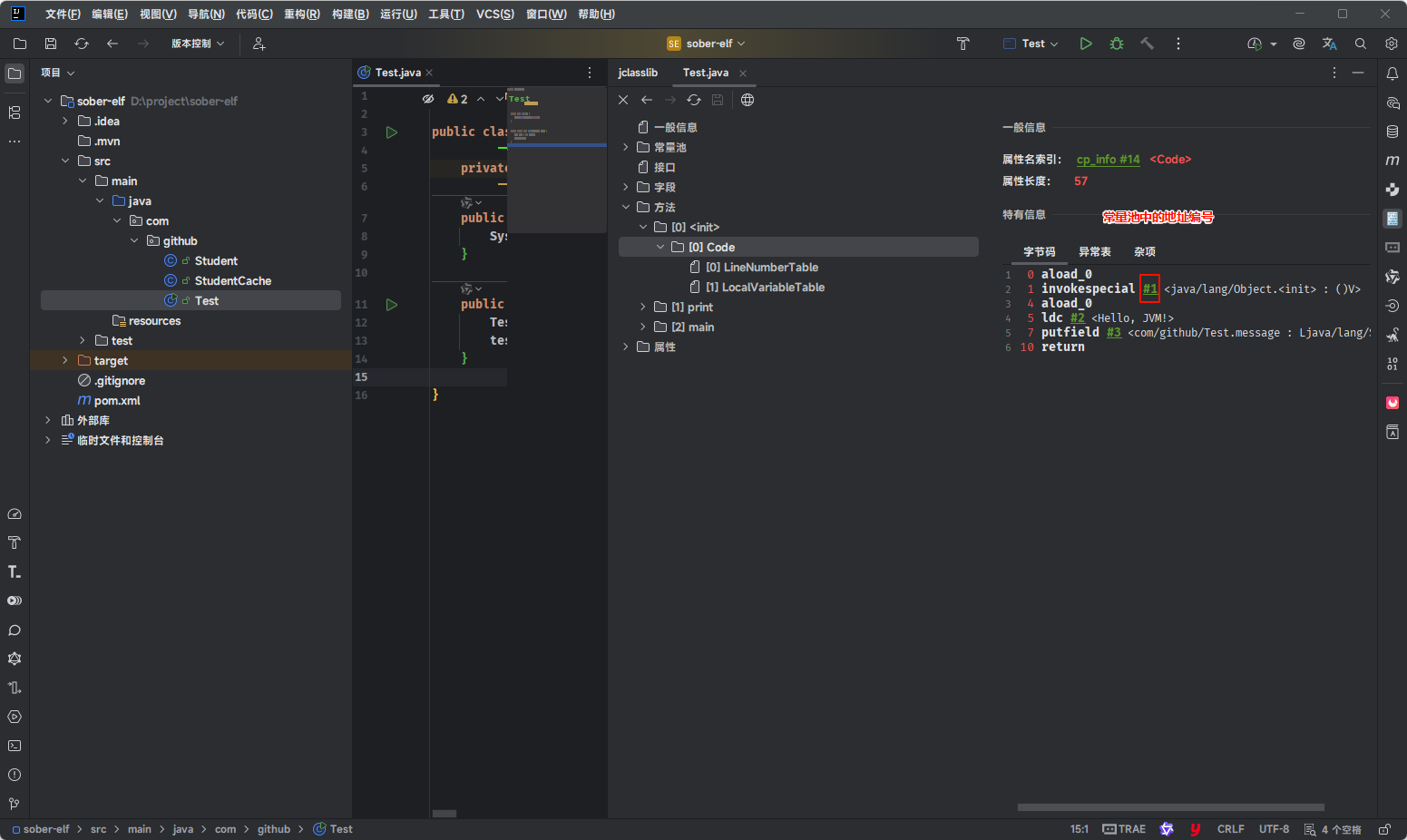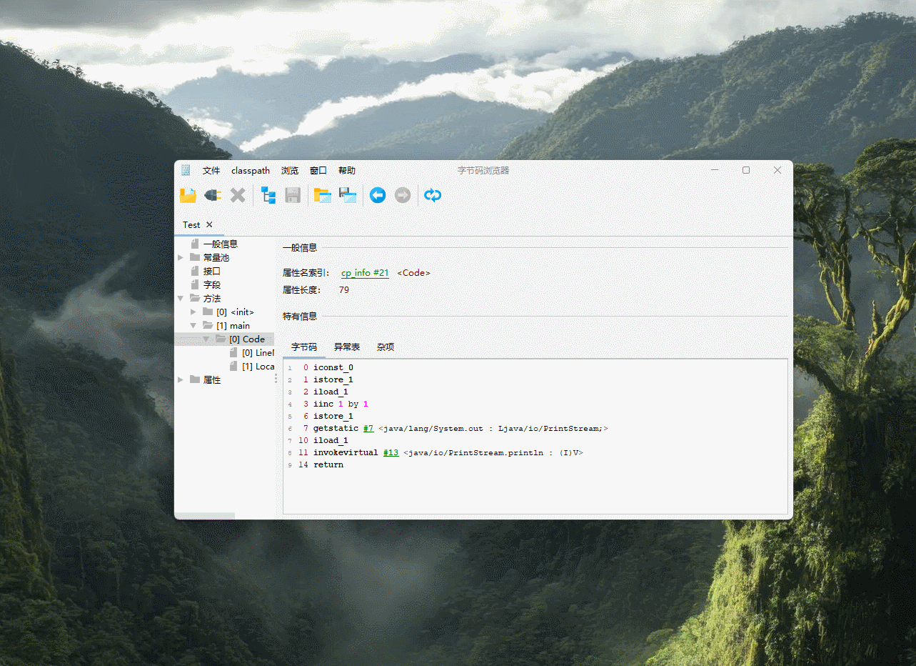 - IDEA 中有对应的 jclasslib 插件,建议在开发阶段使用,可以在代码编译之后实时查看字节码文件的内容。
