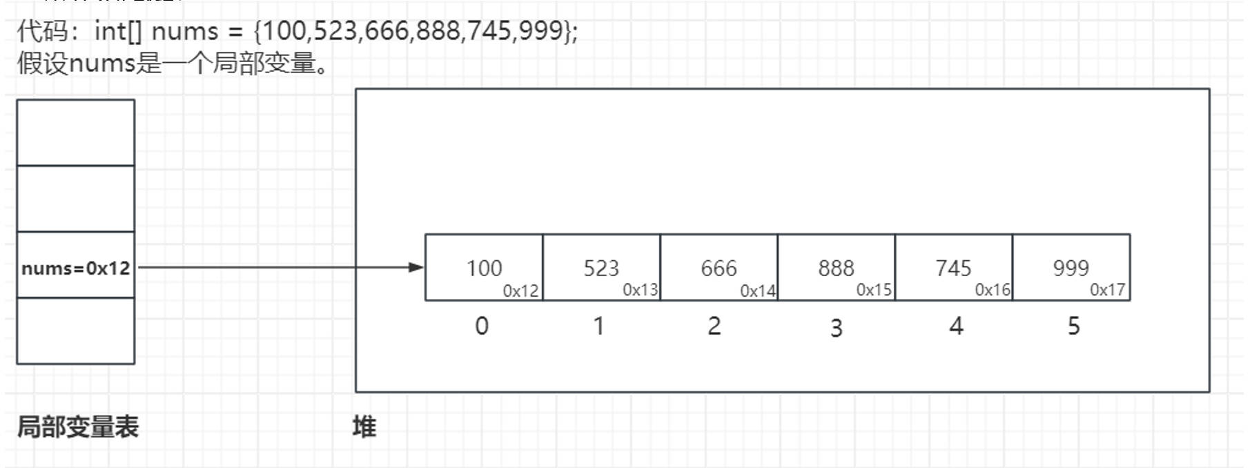 {12,24,36}表示创建一个数组对象,你完全可以把它理解成一个能装数据的东西。这个对象在内存中会有一个地址值[I@4c873330,每次创建一个数组对象都会有不用的地址值。 - 然后,把右边的地址值