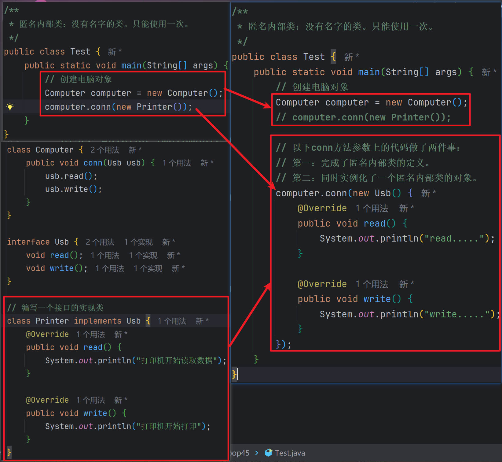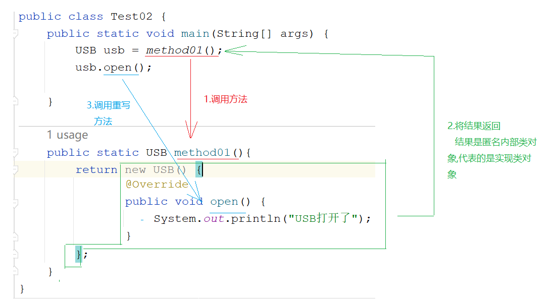 1.问题描述:我们如果想实现接口,简单使用一次抽象方法,我们就需要创建一个实现类,实现这个接口,重写抽象方法,还要new实现类对象,所以我们在想如果就单纯的想使用一次接口中的方法,我们能不能不这么麻烦呢?可以