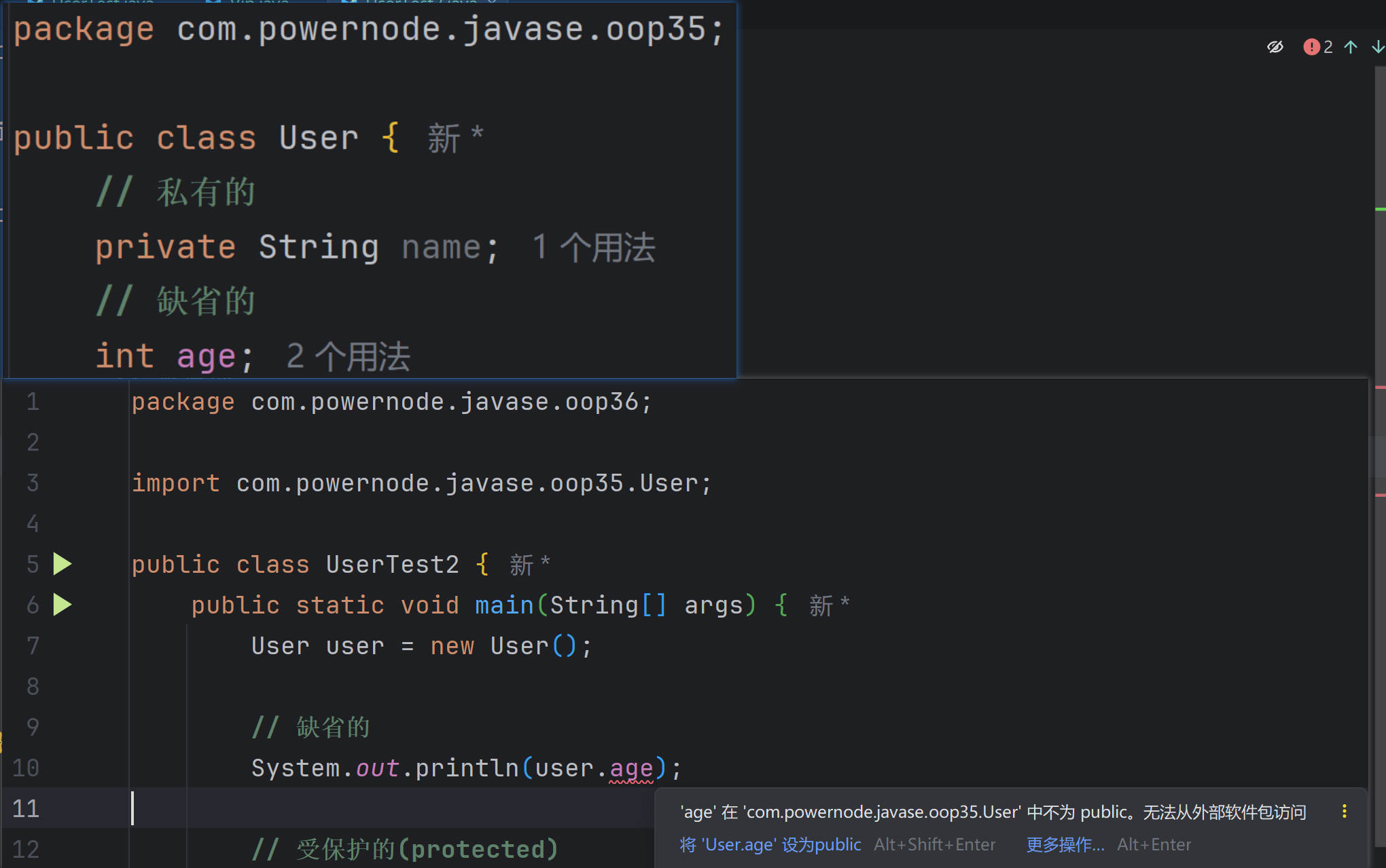 属性姓名:String name;“刘德华对象”和“梁朝伟对象”由于是通过明星类造出来的,所以这两个都有name属性,但是值是不同的。因此这种属性被称为实例变量。