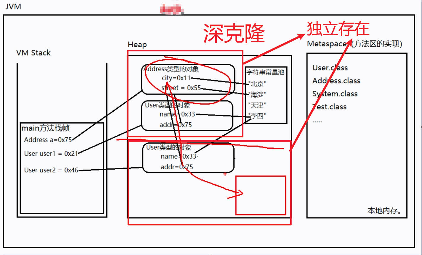 // 引用和对象要区分开。对象在JVM堆当中。引用是保存对象地址的变量。