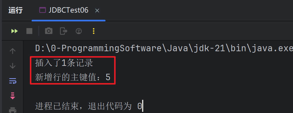 System.out.println("新增行的主键值:" + id);