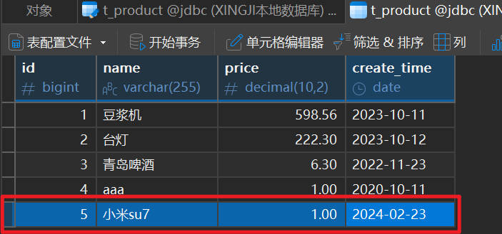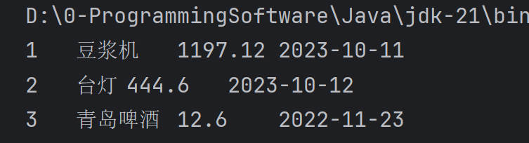 String sql = "insert into t_product(name,price,create_time) values('小米su7',1.0,'2024-02-23')";