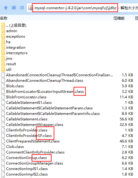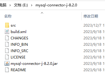 上图中的“mysql-connector-j-8.2.0.jar”就是mysql数据库的驱动,8.2.0这个版本适用于目前最新版本的mysql数据库。可以使用解压工具打开这个jar包,看看里面是什么?